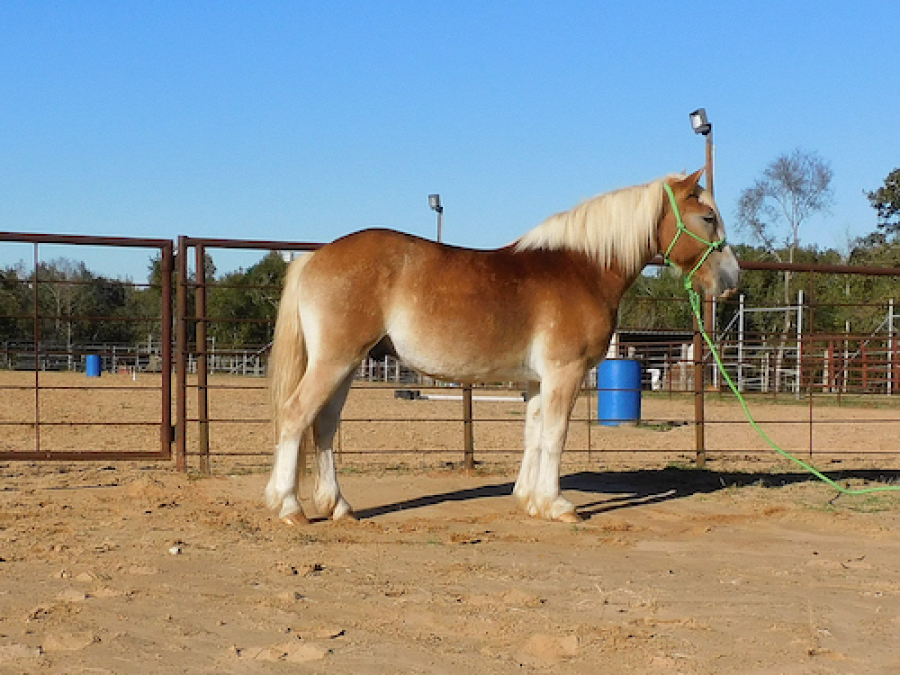 This big stout horse is easy to handle and is broke to ride and drive. He loves to go out and trail and he canters in the ring and out in the country. Very safe, nice, big horse with great gound manners.