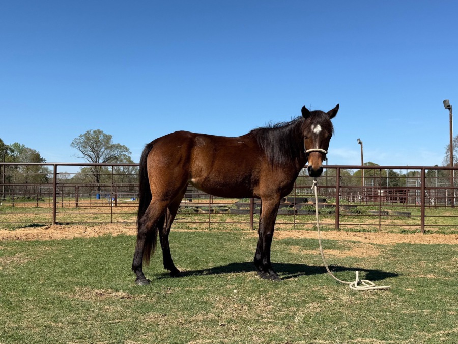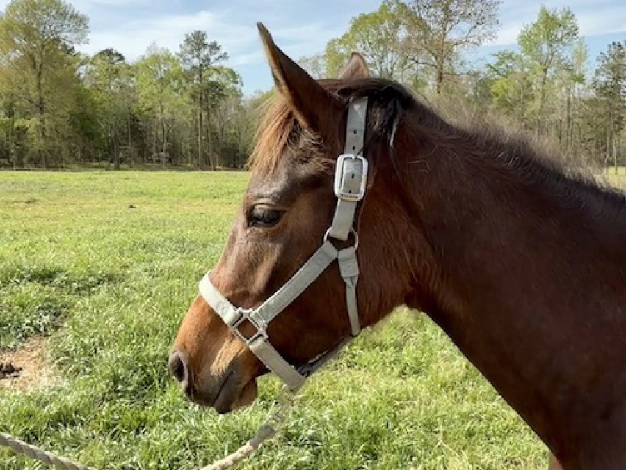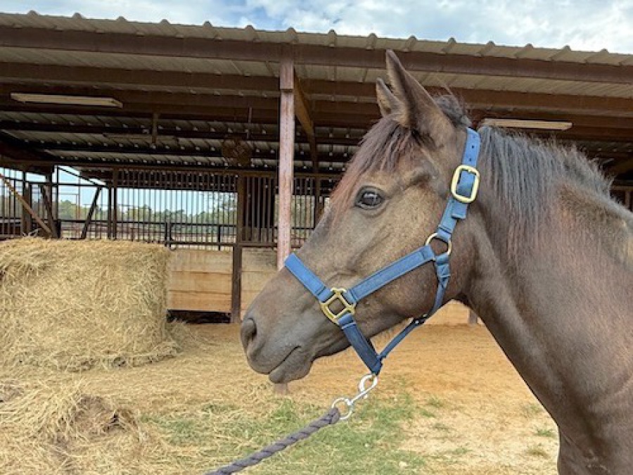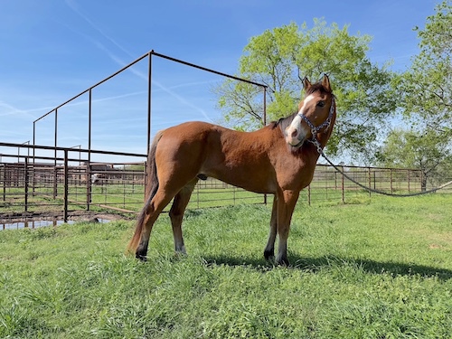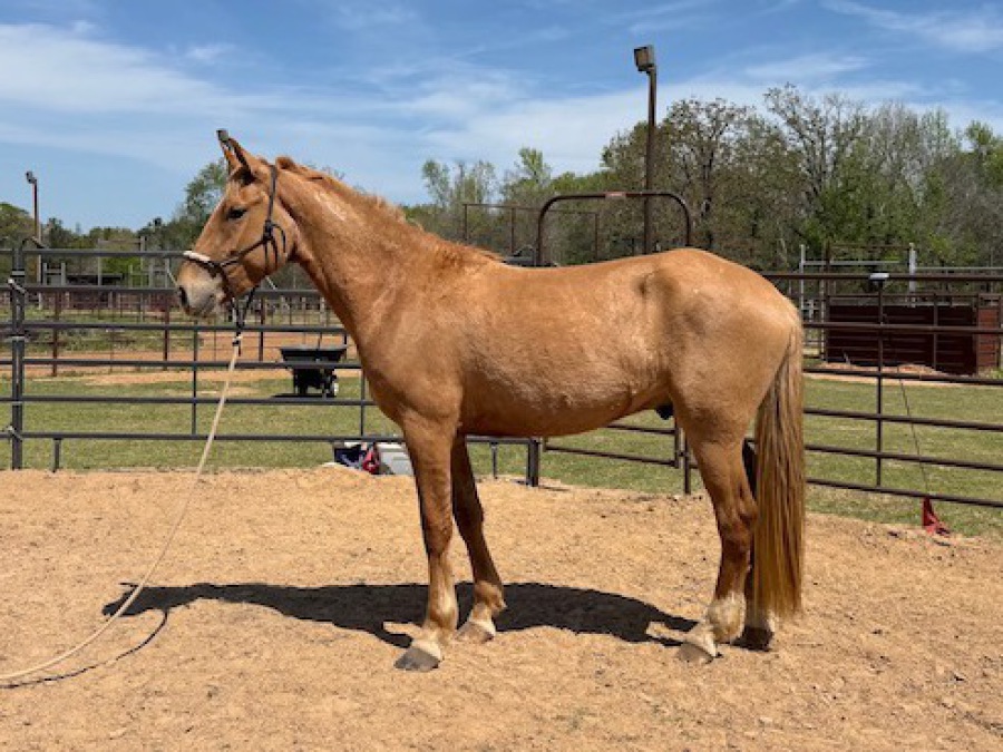 Born 10/6/22, Quarter Horse, grade, filly, red dun, 14.3 hands (02/2026)