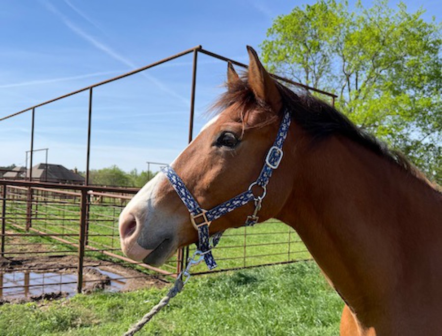 Dolly is a very sweet and in-your-pocket kinda girl and has no idea how big she is. She has immaculate ground manners, picks up her feet, leads like a puppy dog and stands to groom, bathe, mount from the ground or block. She rides ring, trails, rodes and traffic and is broke to drive also. She has had dead beginners on her back and she does not take advantage of someone not knowing how to steer etc. She is kind and always tries to figure out what her person is asking her to do.