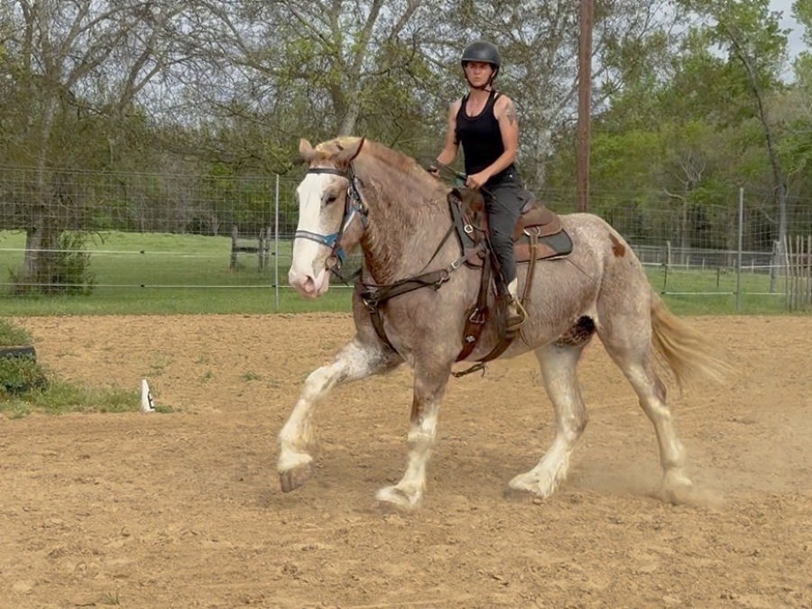 This young horse has no idea of how big he is. He is so friendly, easy to catch, work around, tack, harness, ride and drive. He has a small lope like a rocking horse too. He has his entire life ahead and is eager to learn. Super nice addition to any family if you are looking to add a draft horse.