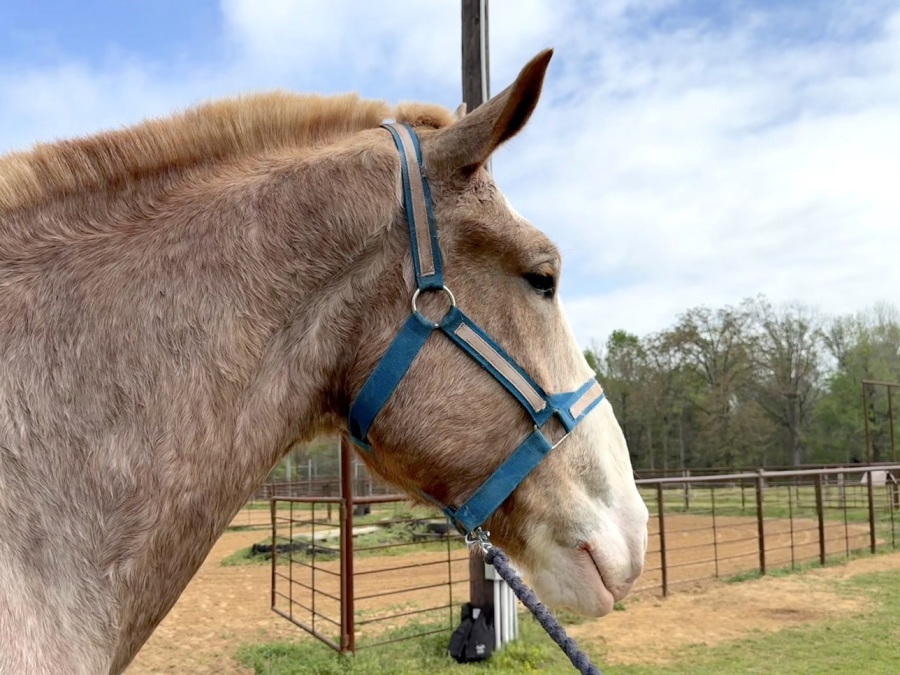 Dolly has been bred to a mammouth jack and is expecting a spring foal. She can sell bred now or with a draft-mule on her side, or she can sell after we weane her little one 6 months post birth.