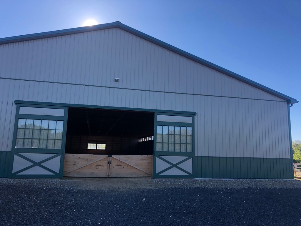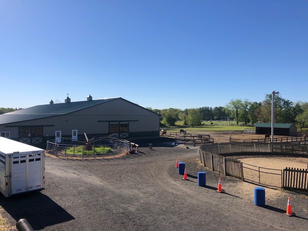 Our outdoor ring has lights and excellent footing. We offer 2 round-pens and a hot-walker with lights also. Lush trails are accessible right off our property. Facility with large and brand new indoor.
