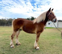6 year old, Belgian, grade, gelding, blond sorrel, 17 hands.