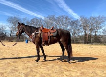 4 year old, Quarter Horse, grade, black, gelding, 15.2 hands. Very easy to ride horse. Loves to trail ride. Has had a ton of groundwork done here with us prior to riding ring and trail. He has a floaty trot and the smoothest canter you will ever experience and goes at a steady pace. This horse can still go any direction.