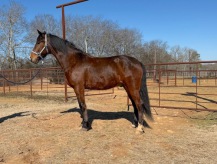 5 year old, QH/Arabian cross, gelding, bay, 15h. Winston is very laid back & prescious. He is very friendly & loves to be groomed. He has been excellent about picking up all 4 legs from day 1. He has been started under saddle in spring of 2025 and is a very easy horse to train. He has also been out on trails, loves to explore the ranch and watch the guys work with the excavator.