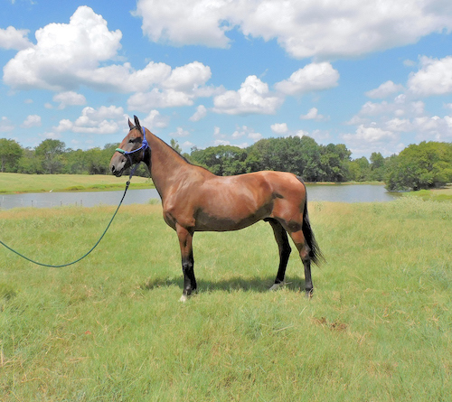2021 registered Half-Arabian, bay, gelding, growing (15hh in 2/2024). This is a very friendly gelding. He leads, ties, loves attention and grooming, stands to bathe, picks up his feet. He has had a great start and will wtc bitless or in a french link snaffle. He trusts his human and tries to please. Super nice dressage prospect to bring along. Very smart horse who learns very quickly.